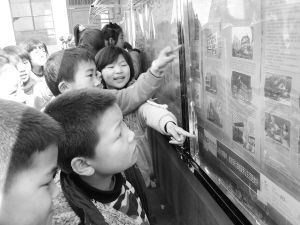 近日,商水县舒庄乡杜店小学的留守儿童正在观看上海世博会教育挂图。据了解,教育部、新华社为全国中小学赠送了上海世博会教育挂图,以增强广大青少年的爱国情怀和民族自豪感。乔连军 摄