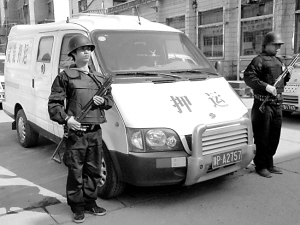 俗话说,没有规矩,不成方圆。周口保安服务公司押运中心自成立以来,坚持从建章立制入手,把服务质量作为企业生命线。每一名公司员工,在其入职当天都会领到两本小册子,一本是《保安押运培训教材》,另一本就是《保安押运规章制度汇编》,包括《车辆管理制度》、《枪支管理制度》、《守押队员守则》、《处置突发事件预案》等,内容涉及保安押运的每个工作环节,且具有很强的可操作性,如“留长发、蓄胡子、戴饰物”、“报警响应时间大于10秒”、“倒车无人指挥”等都被列为违规行为。