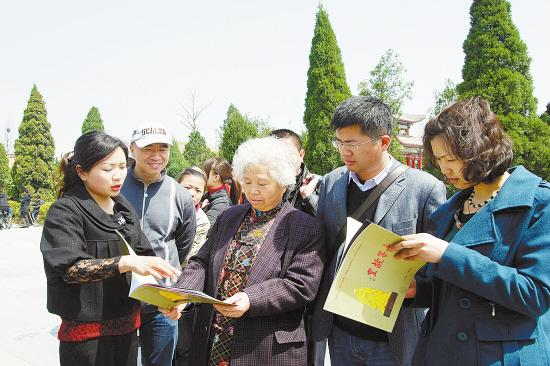 4月5日,工作人员在鹿邑县太清宫景区为来自北京的游客讲解老子文化。连日来,不少省内外游客来到老子故里,感悟传统文化。(沈力 蒋保庆 摄)