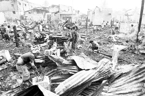 4月7日,在菲律宾首都马尼拉,当地居民在毁于火灾的房屋残骸中寻找失物。当日,马尼拉一处居民区发生火灾,约500所房屋被烧毁。目前没有人员伤亡报告。据当地媒体报道,火灾可能是由液化气罐爆炸引起。 新华社/路透