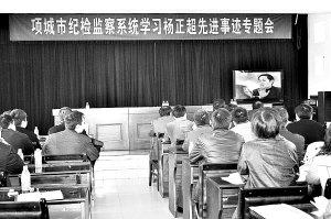 3月25日,项城市纪检监察系统举行学习杨正超先进事迹专题会,与会人员观看了专题片《卫士情怀公仆心》。(杨光林 刘书铭 摄)