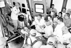 巴西发生校园枪击案 4月7日,在巴西里约热内卢市西区,医护人员在发生枪击案的西尔维拉市立学校运送伤员。里约市卫生局长塞尔吉奥·科尔特斯当天说,里约市7日上午发生一起校园枪击案,造成包括凶手在内的11人死亡,22人受伤。新华社发
