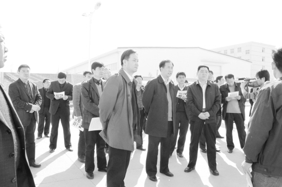 3月26日,由渑池县县长许胜高带队的渑池县党政考察团一行30余人,到太康县产业集聚区观摩重点项目建设情况,县领导唐广辉等陪同观摩。考察团一行先后深入龙源纸业、永兴锅炉、万利源棉业、通泰纺织、宏星制衣等重点建设项目,实地察看了该县产业集聚区发展和项目建设情况,并听取了有关情况介绍。(刘晓刚 摄)