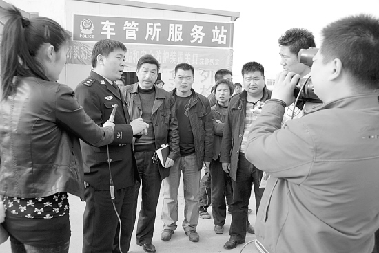为进一步推进我市交警系统“大走访”开门评警活动的深入开展,并将此作为向群众宣传交通安全、展示交警队伍良好形象的有利时机,4月9日上午,市交警支队组织第一次警营开放日活动,20名来自社会各界的群众以及新闻媒体记者在市交警支队车管所及服务点参加了警营开放日活动。 陈永团 摄