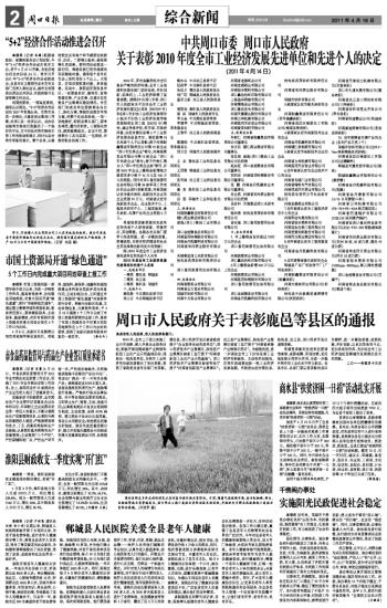2010年,面对金融危机冲击后复杂严峻的经济环境,全市工业战线和各级各部门团结奋进,开拓创新,迎难而上,工业经济取得了显著成绩。按照《中共周口市委、周口市人民政府关于加快全市工业经济发展的意见》(周发[2007]19号)和《周口市加快工业经济发展领导小组关于加快工业经济发展考核奖惩细则》(周工组[2007]1号)精神,通过考核评定,经市委、市政府同意,决定对鹿邑县等5个工业经济发展先进县市区、杨廷俊等19名先进个人予以表彰;授予河南财鑫集团有限责任公司等10家企业“周口市优秀企业”称号,河南联塑实业有限公司等15家企业“周口市先进企业”称号;授予仵树仁等10人“周口市优秀企业家”称号,并按2010年企业上缴税金新增地方留成的多少给予10万元至100万元的奖励。同时对周口鲁花浓香花生油有限公司等39家单项工作突出的企业进行表彰奖励,对被国家认定为驰名商标、高新技术企业的企业奖励10万元,对被省认定为高新技术企业、企业技术中心、工程技术研究中心、工程实验室、著名商标、名牌产品的企业奖励5万元。