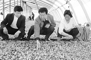 4月14日上午,商水县计生协组织的“科技服务队”在对烟农讲解大棚烟苗病害防治知识。该县计生协把宣传婚育新风与帮助群众科技致富相结合,通过聘请农业专家和致富能人开办“流动课堂”,帮助群众解决农业生产中遇到的疑难问题。(刘飞 摄)