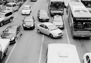 纠结:咱周口的司机太猛了!逢人行道都不知道避让、等待行人,一塞车大家都拼命往前钻,四车道的路能摆出六条车龙来。