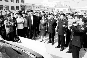 “2011年2月11日,在市区南环路上,康某驾驶小轿车与大型客车相撞,导致小轿车上3人死亡、2人受伤。大家可以看到,这辆小轿车严重变形已经报废。”在事故车辆展览区,市交警支队政委郭照强讲解事故车辆撞毁报废的原因,在场的市民无不震惊,事故的危害深入人心。交通事故模拟演练更是让市民有“身临其境”的感觉。在模拟演练中,一辆汽车与一辆自行车相撞。事故发生后,受伤人员被民警紧张有序地救出。由于“酒驾”入刑即将实施,市民对“酒驾”更为关注。他们参观了交通事故鉴定所,详细了解酒后驾车血样检验程序。