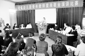 近日,周口市直幼儿园举行了一场以“爱岗敬业、无私奉献”为主题的演讲比赛,充分展示了青年教师的奉献精神和师德风貌。记者 李寒 摄