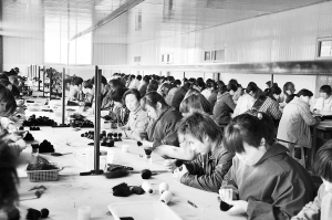 在鹿邑县产业集聚区一家尾毛企业车间里,工人们正在忙碌工作。鹿邑县以产业集聚区为平台,大力发展特色尾毛产业,走出了一条可持续发展的新路子。(闫子健 摄)