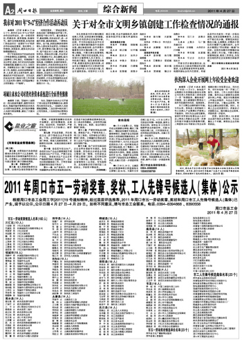 2011年周口市五一劳动奖章、奖状、工人先锋号候选人(集体)公示