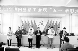 会议表彰县级“五一劳动奖章”、“五一劳动奖状”和六好乡镇工会5个、六好基层工会9个、先进女职工委员会6个、先进工会工作者21人、先进女职工工作者6人、二星级先进工会5个。县政府办公室、白楼镇工会、县烟草局朱集专卖所等32个单位被授予县“五一劳动奖状”荣誉称号,沙满金、许玉芝、李冠军等143人被授予县“五一劳动奖章”荣誉称号。