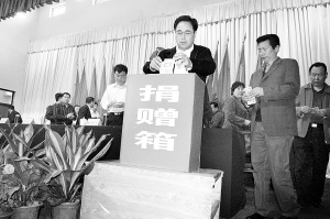 4月26日上午,西华县委书记赵新安在该县“扶贫济困一日捐”活动动员大会上,带头捐款1000元,拉开了该县今年“扶贫济困一日捐”活动的序幕。(记者 张猛 摄)