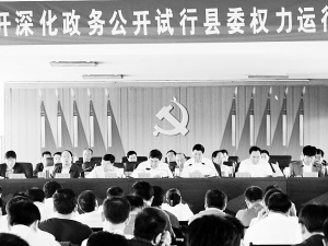 党的十七大明确指出,要确保权力正确行使,就必须让权力在阳光下运行。今年3月份沈丘县被中央确定为党的地方组织党务公开联系点后,省委把该县列为全省开展县委权力公开透明运行工作的18个试点县区之一。沈丘县为开展好党务公开工作,专门组织有关人员外出学习考察,经过周密安排决定从5月开始,在全县范围内实施“三公开”活动,并隆重召开大会,市纪委副书记、监察局局长黄体勤出席会议,杨永志、王建华、李子顺、闫立超、殷晓春、张勇、朱在红、杨所超等在家的四个班子领导也出席了会议,县直各单位、各乡镇(办)负责人参加了会议,县长皇甫立新主持会议。