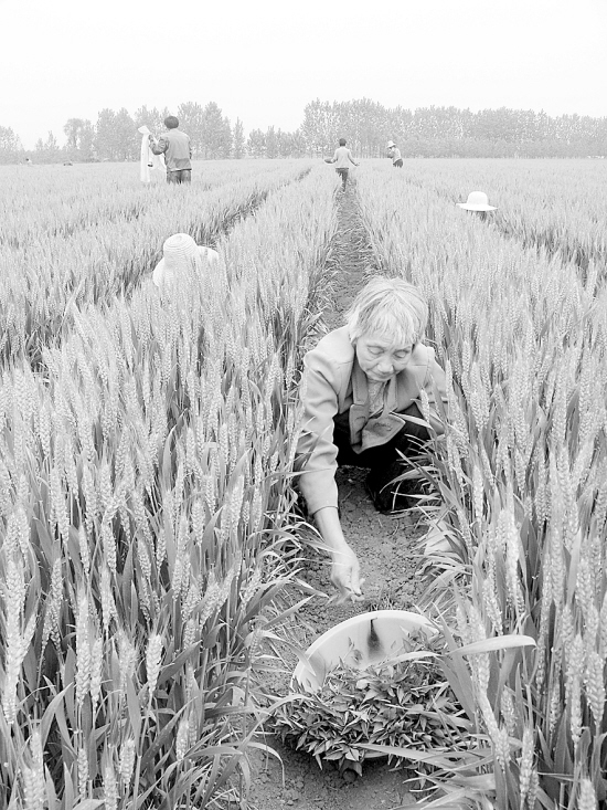 西华县奉母镇是著名的朝天椒生产基地。眼下,该镇抓紧时间进行辣椒小麦套种。图为该镇沟刘村农民正在紧张进行朝天椒栽种。 ( 记者刘彦章 摄)