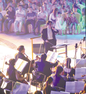 5月6日晚,在市区莲花路旁,一场露天音乐会在这里举行,一阵阵优雅怡人的交响音乐,与秀美的熙龙湾园林风光甚是和谐。据了解,这场露天音乐会由万达·熙龙湾主办。