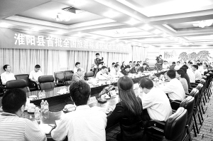 本报讯 (记者 侯俊豫/文 通讯员 闫俊岭/图) 5月9日,以国家旅游局监督管理司副司长刘士军为组长的调研组在省旅游局副局长李亚白、副市长李绍彬、市旅游局局长张颍波等领导的陪同下莅临淮阳,听取淮阳县关于全国旅游标准化试点工作创建情况的汇报。县领导任连军、胡景旭、张建梁、余德海、王怡、霍伟、张海洋、李建功、顾伟以及相关部门负责人和试点旅游企业负责人出席汇报会(如图)。县委常委、组织部长张建梁主持汇报会。