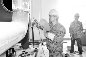 昨日,两名工人在扶沟县产业集聚区污水处理厂一期工程规范操作。该县为了进一步提高产业园区的承载力和吸纳能力,打造环保型产业集聚区,投资兴建了集聚区污水处理厂和中水回用项目,预计日处理污水3万吨。(记者 沈湛 摄)