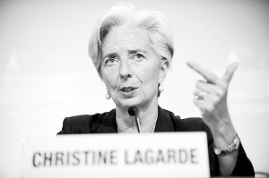 这是2011年4月15日,拉加德在美国首都华盛顿出席世界银行和国际货币基金组织(IMF)联合发展委员会会议时的资料照片。