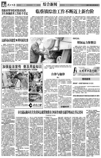 各县市也结合当地情况开展各种各样的宣传活动。鹿邑县盐业局与县疾控中心联合深入居民家中随机抽取食用盐含碘检测样本,按国家标准进行现场检测。同时在县城关三小开展了碘缺乏病预防知识的宣传教育活动,引导和督促学生对家长进行宣传,提高家庭碘盐食用率。此外,项城、商水、郸城、太康等县市盐业部门也都出动宣传车,走上街头,开展宣传和咨询活动,受到群众好评。