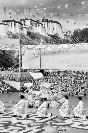 欢歌笑语迎“六一” 5月27日,小朋友们歌舞迎“六一”。当日,拉萨市庆祝“六一”国际儿童节“童心向党”歌咏活动在拉萨宗角禄康公园文化广场举行,来自12所学校及幼儿园的1100多名孩子用歌舞的形式迎接国际儿童节。新华社发