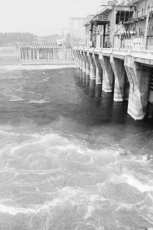 南水北调水源地丹江口水库加大下泄流量保抗旱 南水北调水源地丹江口水库加大下泄流量保抗旱(5月26日拍摄)。受持续干旱天气影响,南水北调中线工程水源地丹江口水库已持续低于“死水位”数米,但几天来仍加大下泄流量以缩小汉江流域中下游水稻主产区的用水缺口,保抗旱。