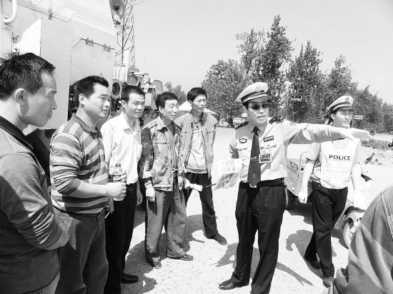 夏季是交通事故的多发季节,加之返乡忙农的农民工骤然增加,农用车、大型收割机等机动车辆的上路行驶,势必给道路交通安全管理工作带来很大的压力。 图为:金海路派出所民警对跨区域作业的联合收割机进行事故隐患排查、并及时送上了矿泉水等物品。 记者 陈永团 通讯员 王天晨 摄