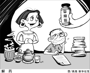 随着高考进入倒计时,父母急切的心情、老师期待的目光、同学之间的相互竞争常会给一些考生造成不同的心理压力,出现焦虑、失眠、出汗、食欲不振、多梦等“高考综合征”。专家表示,考生和父母只要怀有“平常心”就可有效缓解“高考综合征”。 新华社发