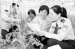 针对夏季各类盗抢侵财案件增多趋势,近日,扶沟县公安局组织派出所辖区民警深入开展“民警大走访,夏季送安全”活动,向群众宣传防盗、防火、防抢劫、防诈骗等知识,提高群众的自我防范意思,减少和避免各类事故和案件的发生。图为:辖区民警在向群众宣传安全防范知识。 任君箫 李龙喜 摄