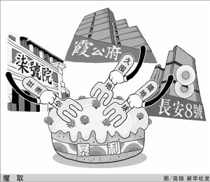 随着房地产调控新政对市场影响逐渐加重,楼市成交量锐减,高端楼盘却在冷清的市场中格外抢眼。5月以来,北京豪宅逆势而动,钓鱼台7号院狂涨至30万元/平方米,从北京最贵蹿至全国最贵,曝出最严限购令下的楼市暴利,6月3日该项目已被暂停销售。京城另外两大在售豪宅霞公府和长安8号,尽管价格未现涨势,却也在以不同的手段攫取着暴利。 狂涨价、久囤地、撬地球——最经典的楼市三大暴利法则,在京城三大豪宅项目中演绎得淋漓尽致。 新华社发