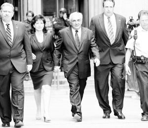 6月6日,国际货币基金组织前总裁多米尼克·斯特劳斯-卡恩和妻子走出纽约高等法院。当日,卡恩在纽约高等法院再次出庭受审,否认针对他的性侵犯指控。法庭宣布,卡恩将于7月18日再次出庭。