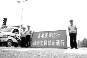 6月7日上午,西华交警正在教育大道一高考考点附近执勤。在高考期间,该县交警大队精心组织安排,对各考点周围道路进行了临时交通管制,安排警车为接送考生专用车辆开道,确保考生安全、顺利到达考点进入考场考试,全力为考生护航。记者 张猛 摄