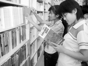 昨日,几位学生正在一家购书中心读“红色书籍”。随着“七一”临近,周口一些购书中心、书店等开辟的建党90周年“红色书籍”专柜受到读者热捧。《毛泽东与国民党爱国将领》、《中国共产党历史》等一批“红色书籍”销量大幅增长。记者 王映 摄