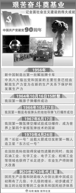 八大以后,党领导全国各族人民在神州大地掀起了一场社会主义建设的高潮。进入20世纪60年代以后,在严重经济困难和复杂环境下,中国人民奋发图强,艰苦奋斗,创造了前所未有的工业建设奇迹和科学技术奇迹,取得了举世瞩目的伟大成就。