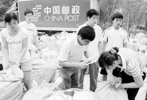 为方便高校毕业生邮寄包裹,市邮政局工作人员于近日主动进校园为毕业生办理邮寄业务,受到了高校师生们的好评。(记者 李寒 摄)