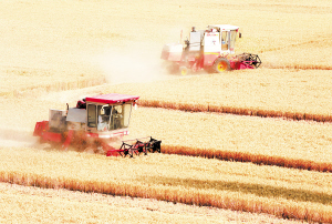 收割机正在河南原阳麦区作业(6月7日摄)。目前,河南省小麦收割已全面结束,预计夏粮总产量在去年618.2亿斤的基础上又有增长,单产也有相应提高,有望实现连续9年增产。(新华社发)