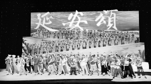 大型情景音画剧《延安颂》西安首演 6月27日晚,演员们在大型情景音画剧《延安颂》中演出。当日,大型情景音画剧《延安颂》在西安第四军医大学长乐大礼堂精彩首演。
