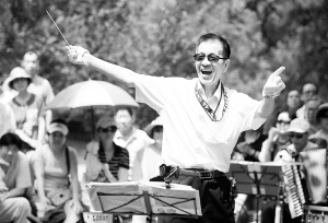 老年乐队演绎红歌颂党恩 6月18日,北京阳光艺术团铜管乐队成员吕秉魁指挥乐队演奏红歌。北京景山公园常年活跃着一支由离退休职工组成的乐队——北京阳光艺术团铜管乐队,乐队成员年龄从50岁到70多岁之间。