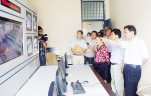 淮阳县教体局局长刘伯俊在考场视频监控室检查指导工作。