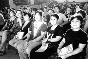 川汇区六一路小学四年级学生朱信谊小朋友参加了序曲《听妈妈讲过去的事情》现场演出。演完这个节目,她也来到台下欣赏节目。《十送红军》、《在灿烂阳光下》等很多歌曲难度很大,但是朱信谊似乎都能跟上节拍,她不时和着台上的乐曲轻声吟唱。