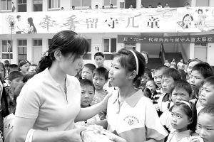 “孩子,有我们在你们就不会孤单。”计生工作人员看望留守儿童。