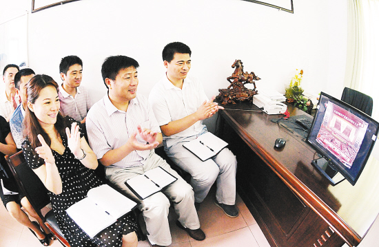 7月1日上午,我市各界群众认真收听收看庆祝中国共产党成立90周年大会实况,学习会议精神,畅谈学习体会。图为川汇区陈州办事处干部在收看大会盛况。 ( 记者 李寒 摄)