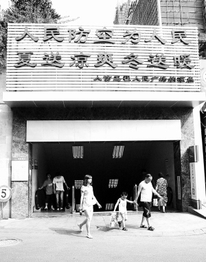 7月4日,市民从重庆市人民广场“人防工程纳凉点” 进出。 重庆市近日来持续晴热、高温天气,重庆市气象台连续发布了数个橙色高温预警,市政府已提前在全市开放107个纳凉点,供市民避暑纳凉。