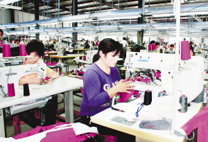 台资企业宏扬制衣有限公司自从在鹿邑县建厂投产后,得到了当地政府的大力支持,其一线工人大都是当地政府部门帮助招收的熟练技术工,切实解决了企业的后顾之忧,发展前景广阔。图为工人们正在紧张工作。