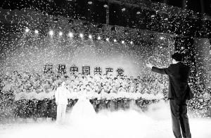 本报讯 (记者 杜少华)“我们万众一心,团结奋斗坚强如钢;我们手挽手,迎风踏浪高举旗帜;发展进步不可阻挡,跟着党奔向前方……”6月29日晚,县影剧院内座无虚席、热闹非凡,由鹿邑县委、县政府主办,县委宣传部承办的“唱响鹿邑——庆祝建党90周年歌咏大赛”在县影剧院隆重举行。来自全县委局机关和企事业单位的13支代表队的表演激情四射、精彩纷呈。周口市人民政府副市长、鹿邑县委书记杨廷俊带领县四大班子领导与1000多名干部群众一起共庆中国共产党90华诞。