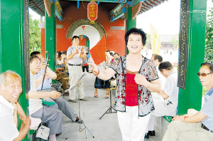 连日来,鹿邑县老干部戏迷协会的十多位文艺爱好者在明道宫景区、县福利院为各地游客和五保老人们表演《红灯记》、《朝阳沟》、《河南人》等戏曲名段,受到了社会各界的热烈欢迎和广泛好评。(张艳霞 蒋保庆 摄)