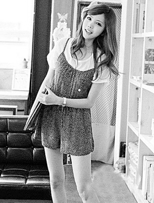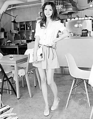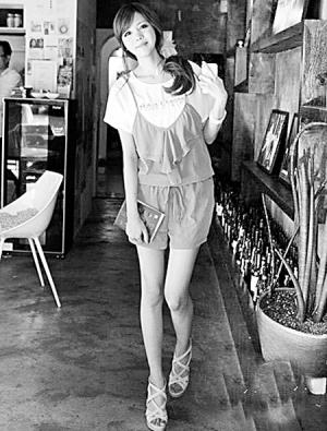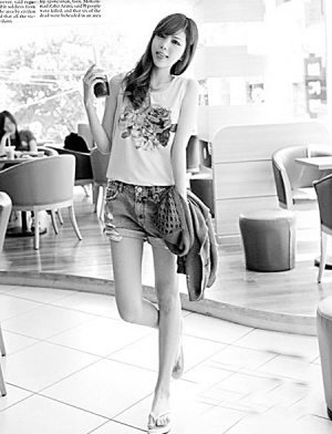 ←T恤加热裤是夏天最常见的装扮,简单的灰色T恤轻松穿出优雅大方淑女味。(摘自人民网)