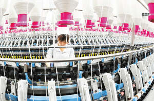 昨日,一名纺织女工一丝不苟地在佳利达纺织车间劳作。商水县围绕农业资源优势,积极发展近农产业,全力打造面粉、饲料、纺织、板材加工、食品加工等支柱产业体系,在全县构筑了新的工业亮点,走出了一条以农业发展工业、工业反哺农业的互动工业化道路。