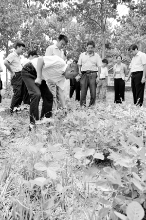 7月7日,太康县农业局专家在向媒体记者介绍套种方法。当日,省几家媒体记者在清集乡了解农民一年三熟、一年四熟间作套种情况。(刘俊涛 摄)