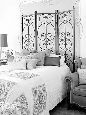 | 铁艺家具。拥有流畅线条的铁艺床,无论是从形态还是质感上,都尽显凉爽魅力,再加上充满好感的碎花床品,让卧室充满耐人寻味的细节。 |